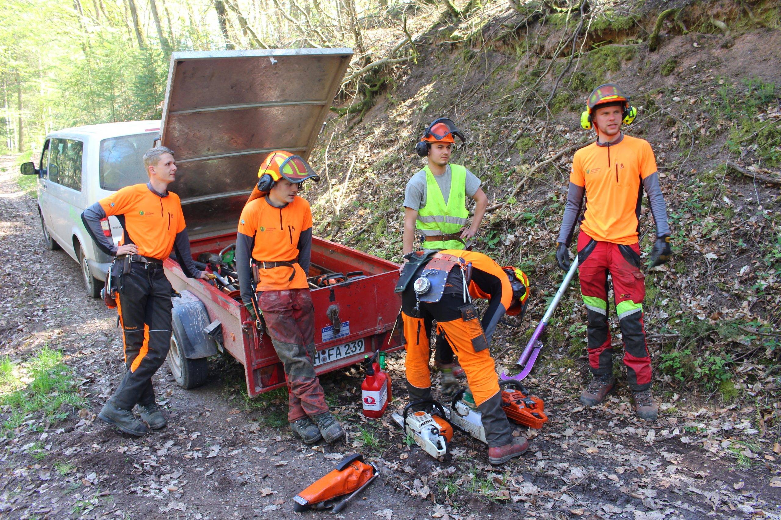 Nach Verabschiedung der Eltern erfolgte der erste Betriebsbesuch. In einem Kleinbus fuhren die Jugendlichen zum Forstamt Soonwald im Entenpfuhl.