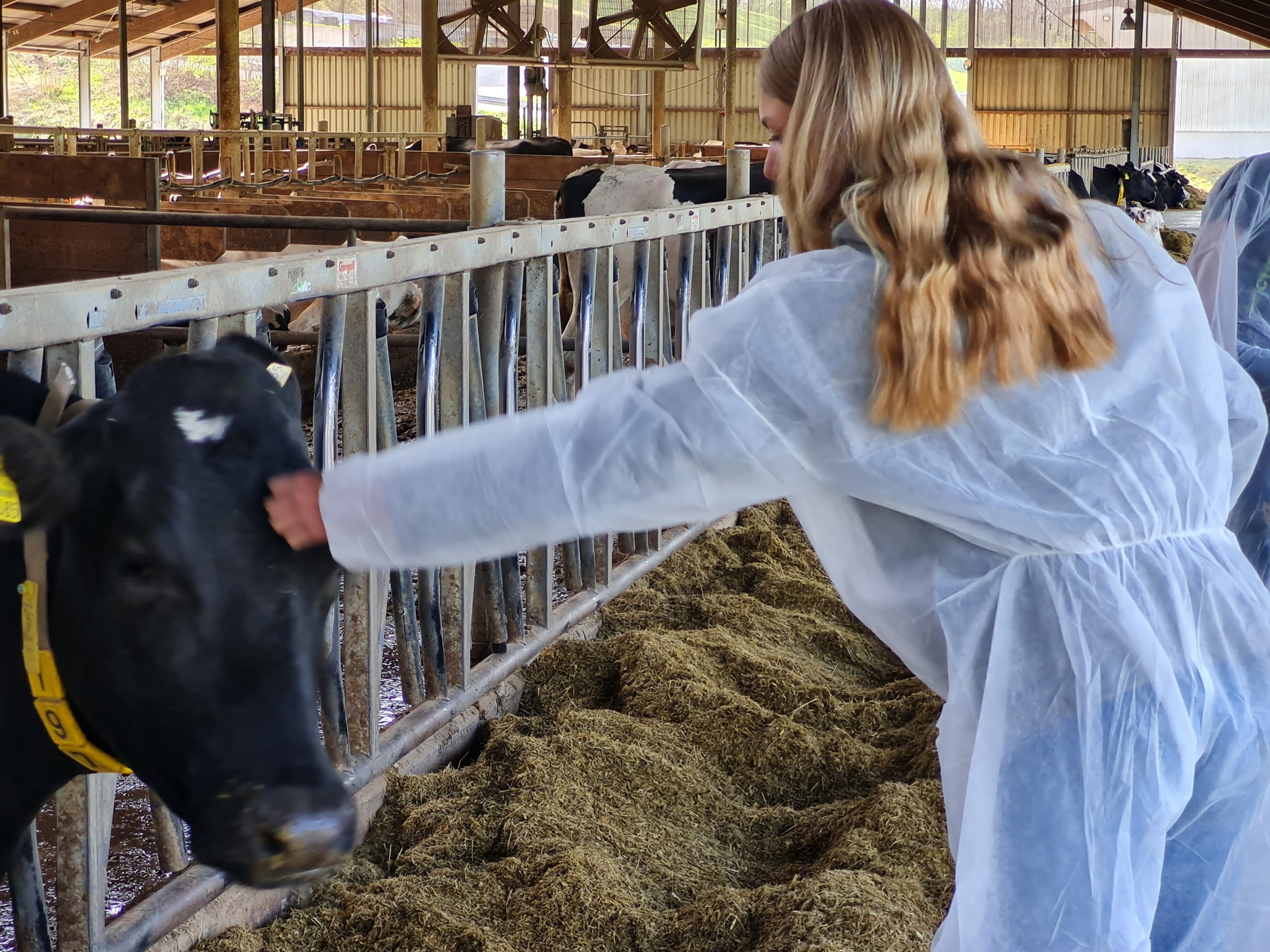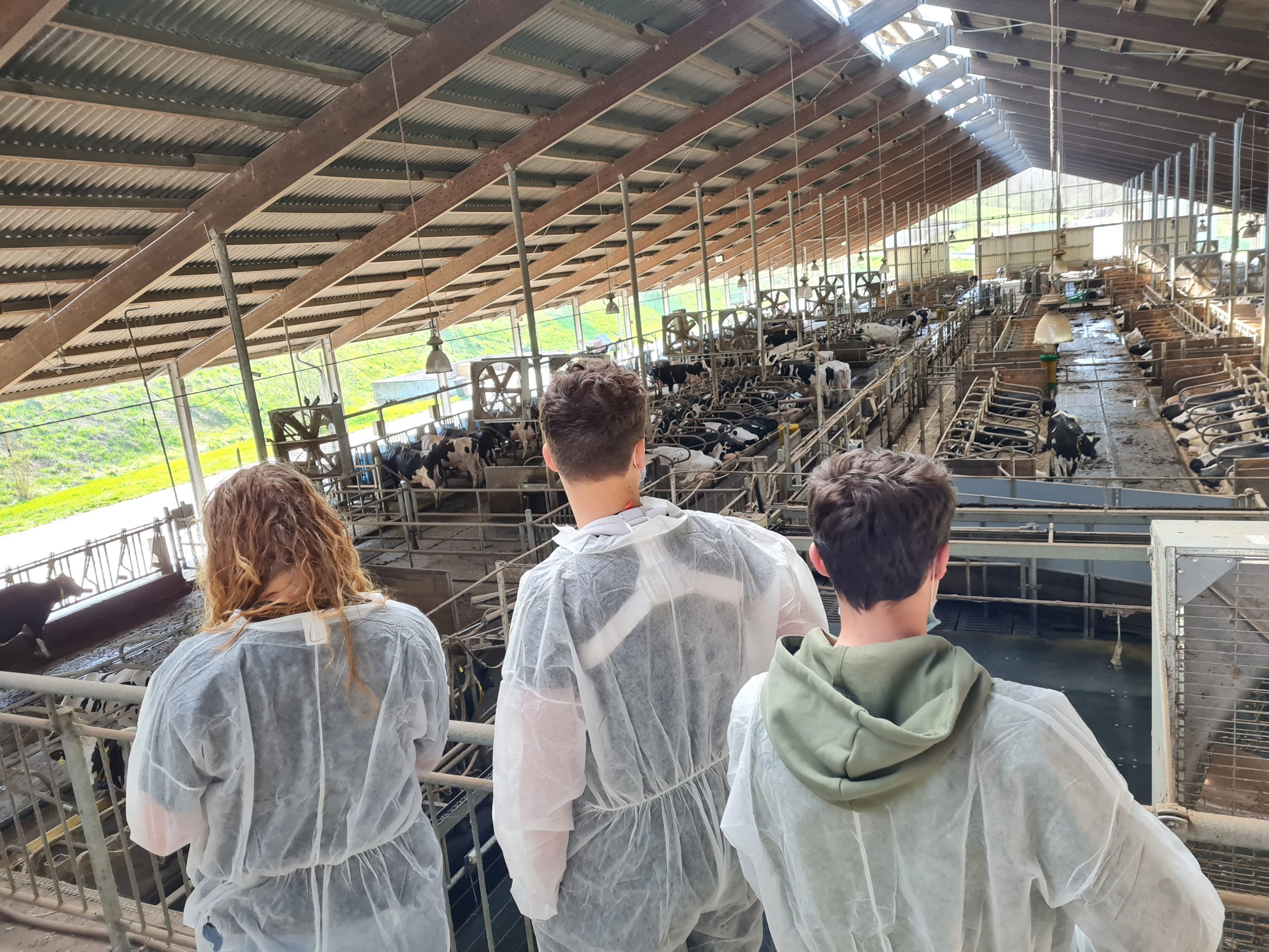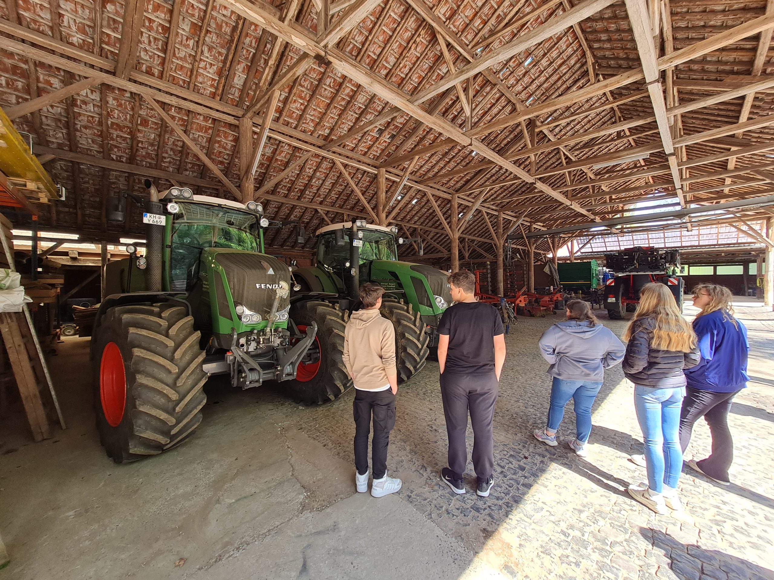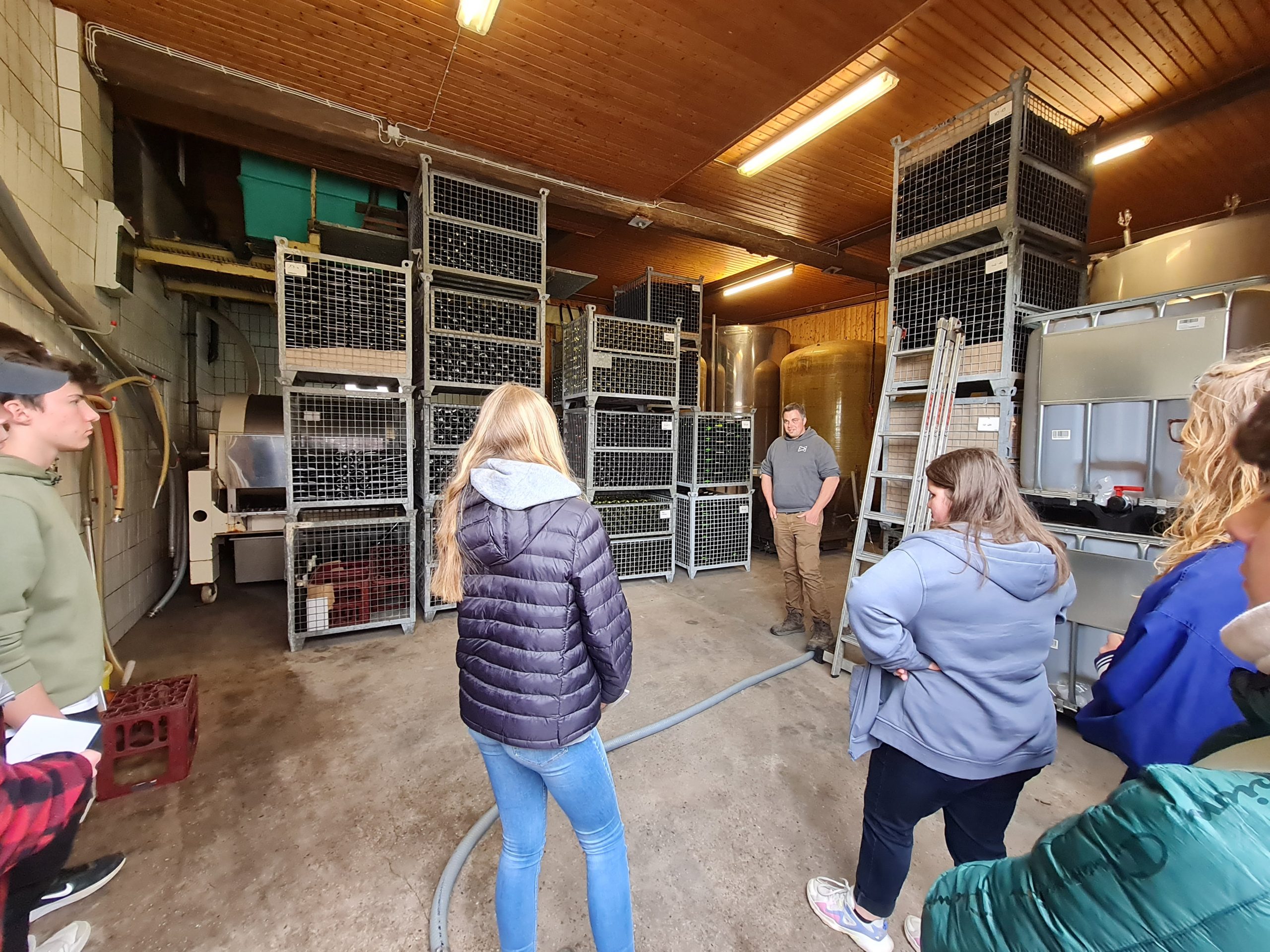 Im Anschluss ging es nach Bockenau auf den Milchviehbetrieb Lindenhof der Familie Essich. Nach einer kurzen Begrüßung durch Andreas Essich übernahm Sohn Moritz die Führung über den Betrieb. Der Lindenhof hält 430 Milchkühe und produziert auf 200 Hektarn Ackerfläche Futtermittel für die Tiere. Durch die große Zahl der Tiere kommen täglich Kälber zur Welt und müssen entsprechend versorgt werden. Für die Jugendlichen waren diese Dimensionen beeindruckend. Neben den Stallanlagen wurde den Teilnehmern auch die Biogasanlage gezeigt und ihre Funktionsweise erklärt. Familie Essich bietet jungen Menschen immer gerne die Möglichkeit, auf dem Betrieb Praktika zu absolvieren und beschäftigt immer auch 2-4 Auszubildende. Auch die Teilnehmer seien gerne willkommen, mal auf dem Hof ein Praktikum zu machen.