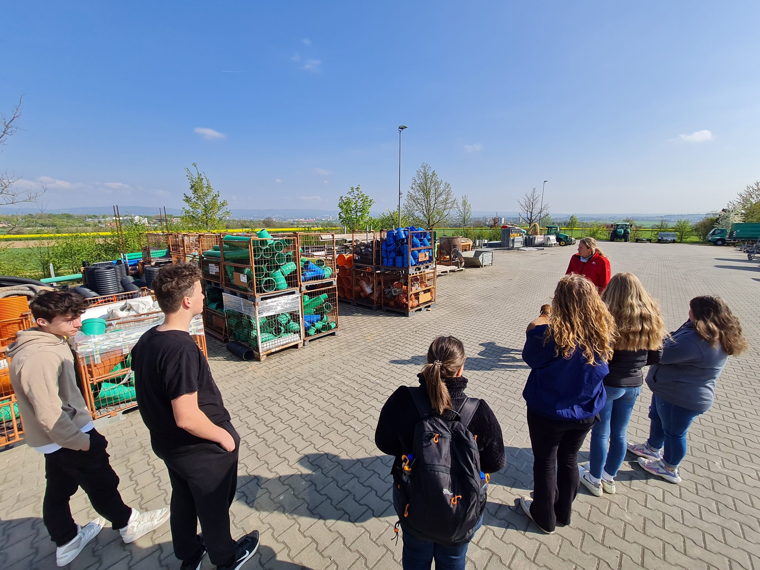 Der erste Betriebsbesuch war der Garten- und Landschaftsbaubetrieb Schuler Service Group in Klein-Winternheim. Der Betrieb wurde 2020 im Rahmen des Ausbildungsbetriebs des Jahres für sein Engagement in der Ausbildung geehrt. Schwerpunkt des Betriebes sind Großprojekte, die von Land, Städten und Kommunen ausgeschrieben und nach Vorgabe angelegt werden müssen. Dazu gehören Park- und Sportanlagen, Parkplätze, etc. Verstärkt lassen jedoch auch große Firmen ihre Betriebsgelände gestalten und pflegen. Kleingärten von Privatleuten werden so gut wie gar nicht mehr angelegt. Der Beruf bietet und fordert weit mehr als das Pflanzen von Blumen und deckt Pflaster-, Straßen-, Tiefbau- und Kanalarbeiten ab. Der Betrieb legt dennoch großen Wert darauf, dass alle Auszubildenden auch im Bereich der Pflanzenkunde fit sind, auch wenn Grünanlagen bei vielen der Projekte nur eine untergeordnete Rolle spielen. So sollen sie im gesamten Spektrum des Berufs Fachwissen erlangen.